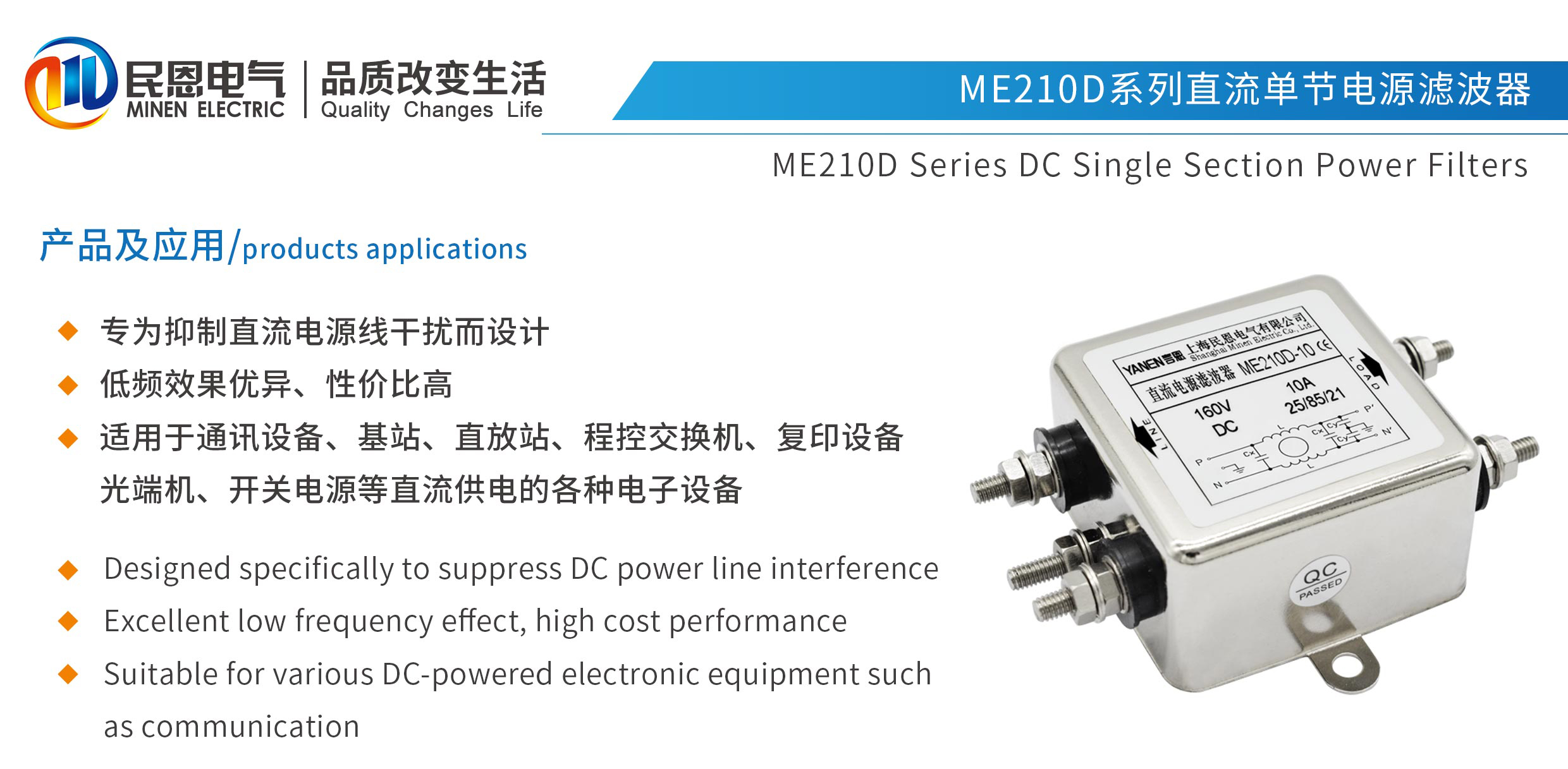 變頻專用濾波器 伺服專用濾波器 正弦波濾波器 無源諧波濾波器 APF有源濾波器 DV/DT濾波器 三相三線濾波器 三線四線濾波器 單相電源濾波器 直流電源濾波器 IEC插座濾波器 光伏逆變器專用濾波器 醫(yī)療專用電源濾波器
