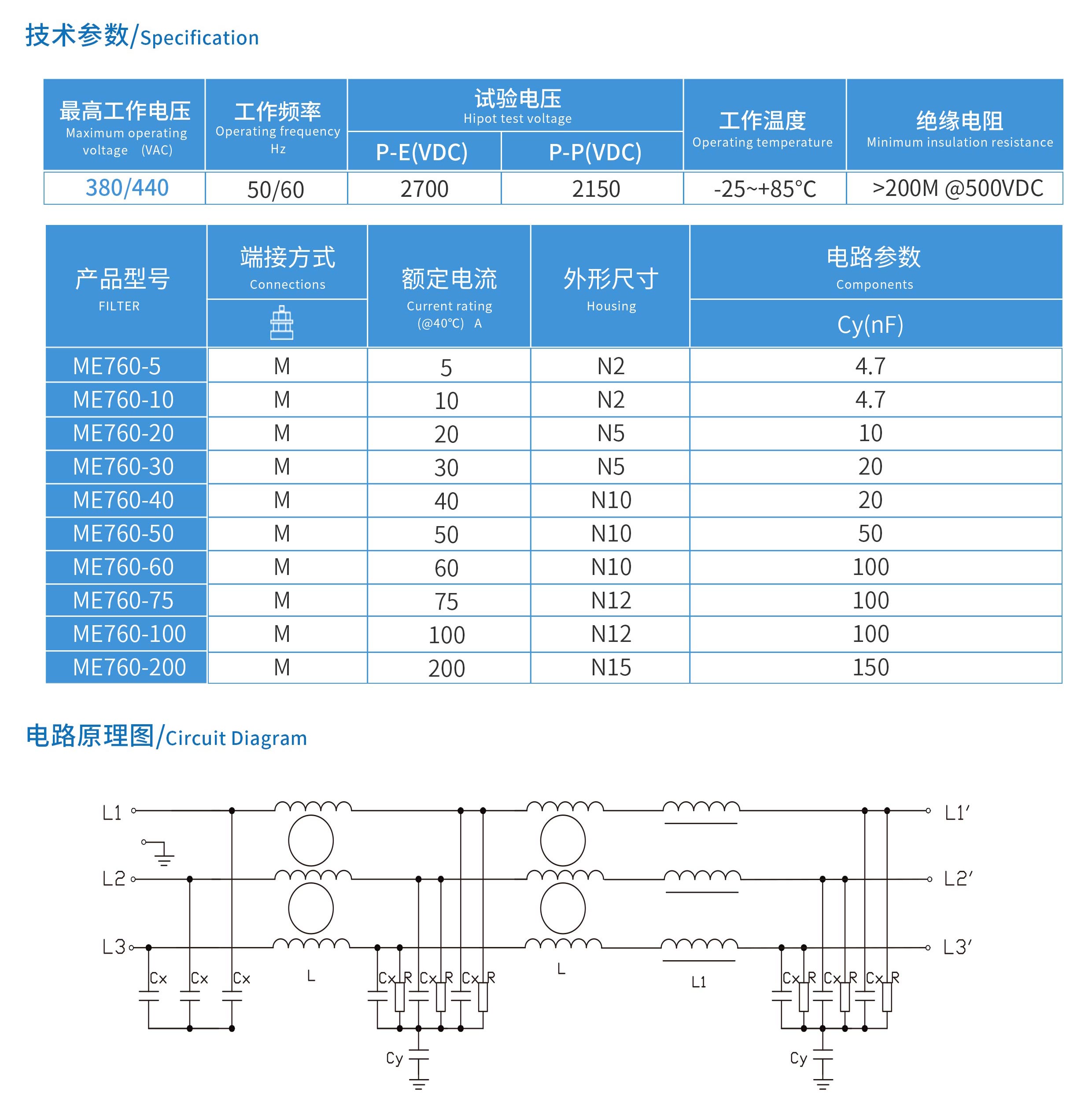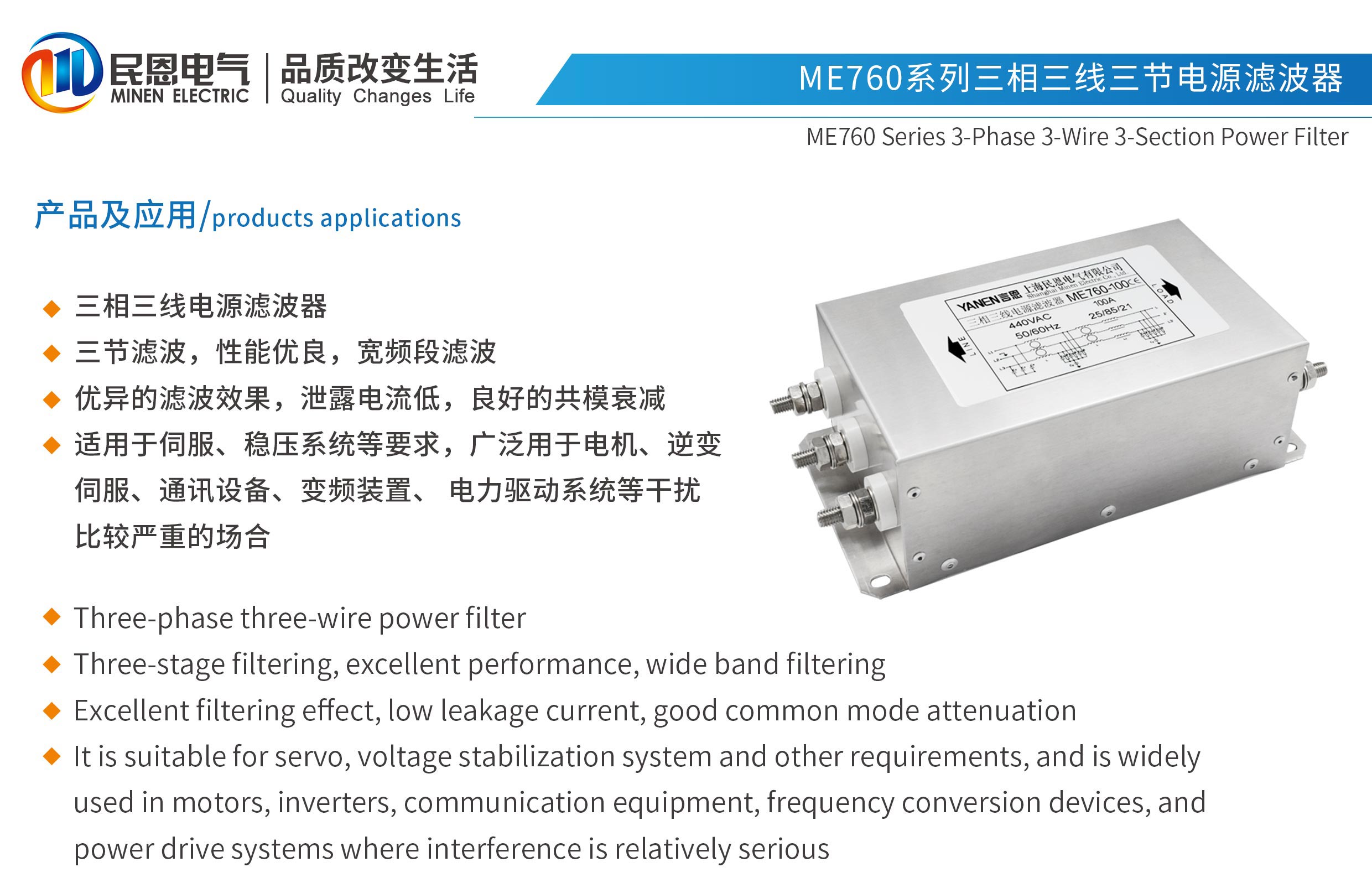 ME760系列三節(jié)三相三線電源濾波器