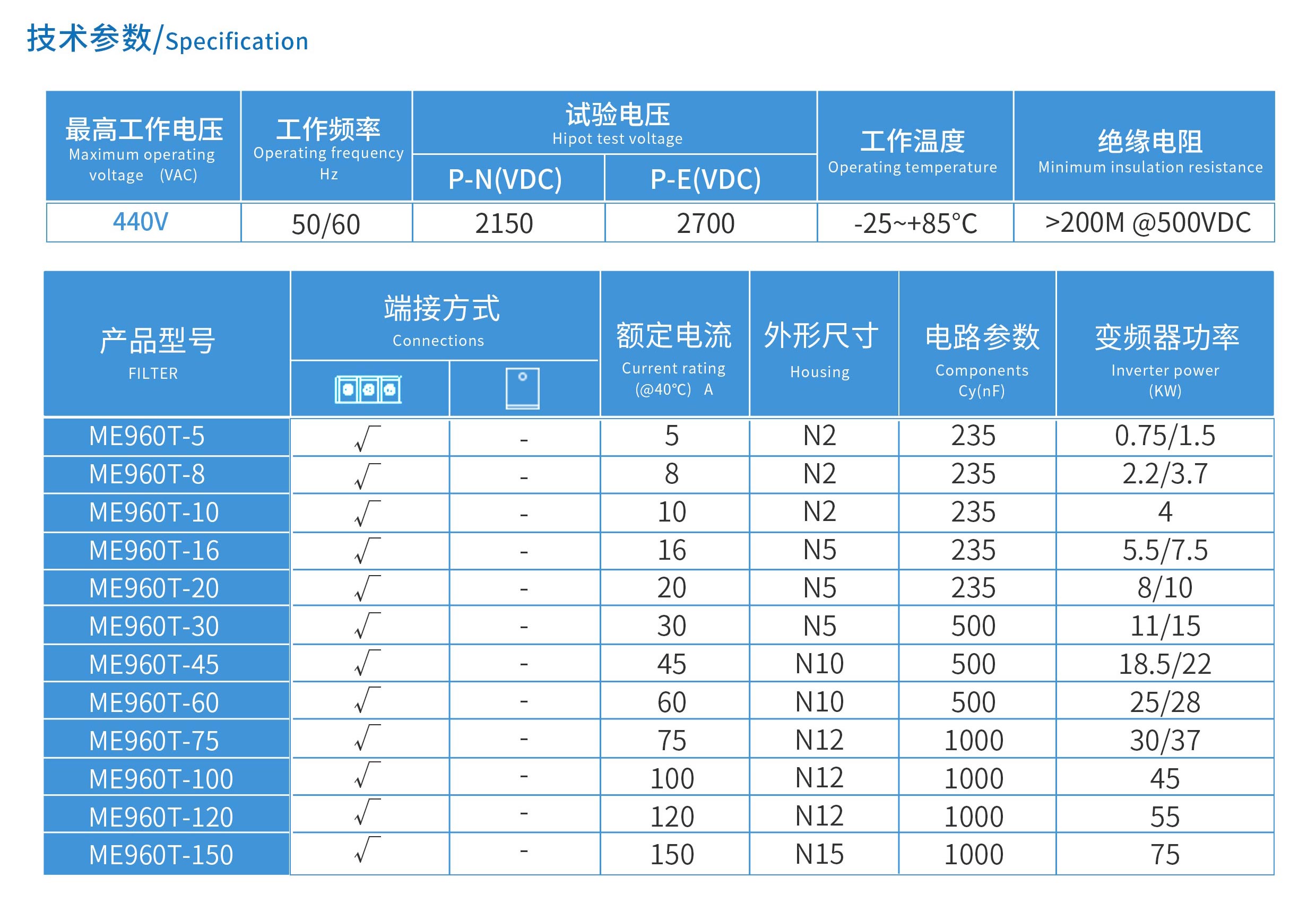 ME960T系列變頻器專(zhuān)用輸出EMC濾波器