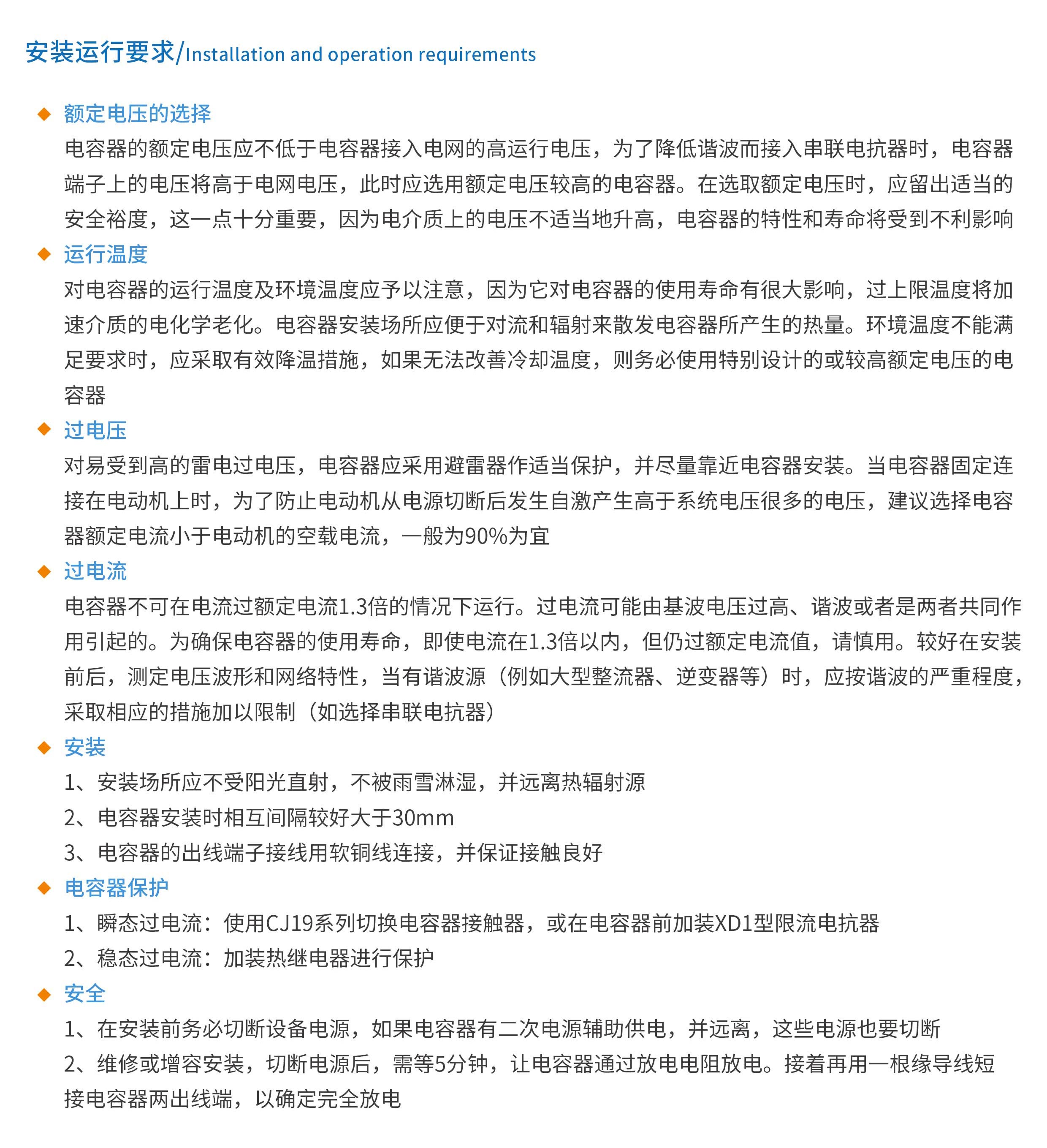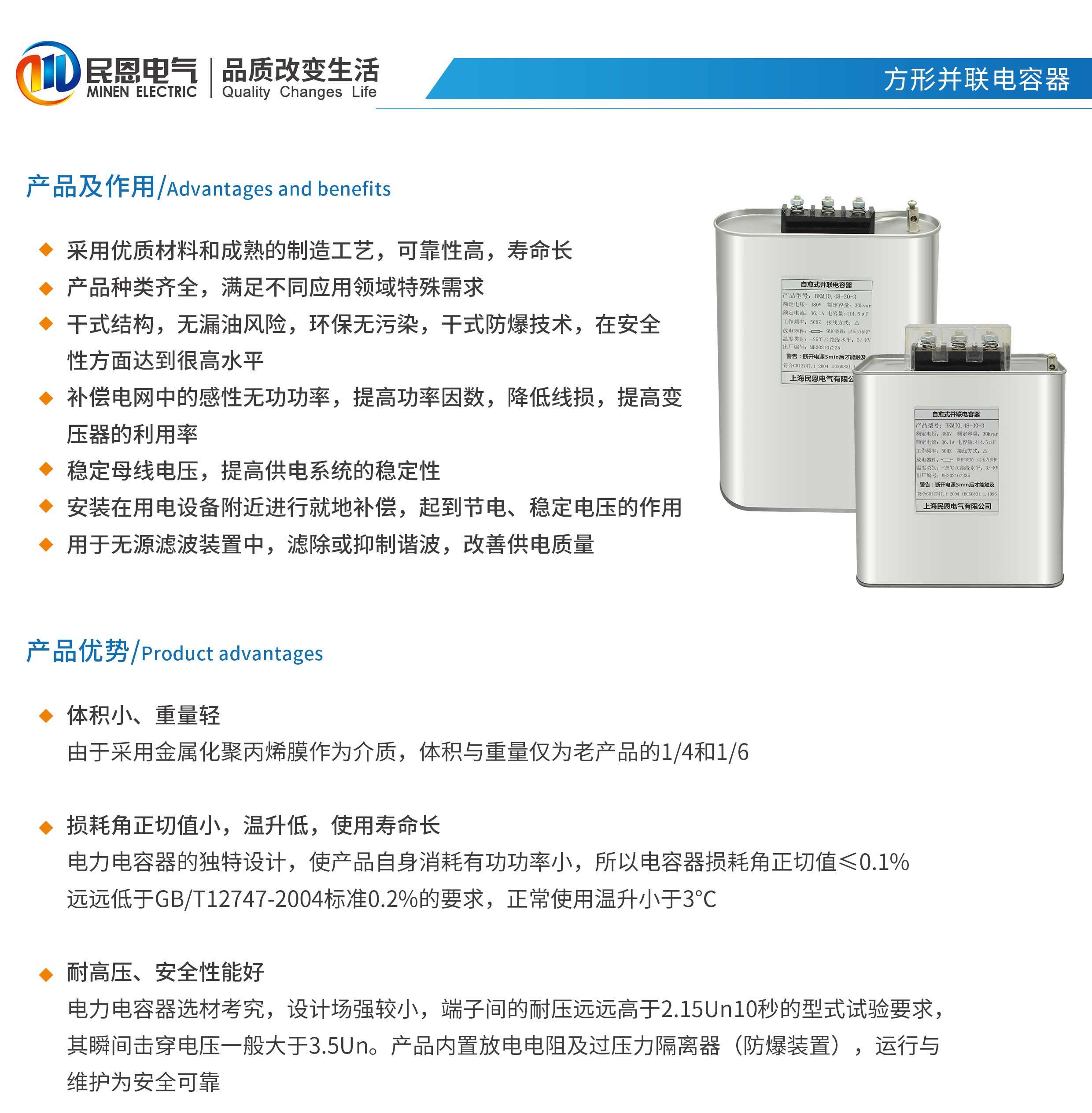 采用優(yōu)質(zhì)材料和成熟的制造工藝,可靠性高,壽命長,產(chǎn)品種類齊全,滿足不同應用領(lǐng)域特殊需求,干式結(jié)構(gòu),無漏油風險,環(huán)保無污染,干式防爆技術(shù)在安全性方面達到很高水平,補償電網(wǎng)中的感性無功功率,提高功率因數(shù),降低線損提高變壓器的利用率,穩(wěn)定母線電壓,提高供電系統(tǒng)的穩(wěn)定性,安裝在用電設備附近進行就地補償,起到節(jié)電、穩(wěn)定電壓的作用,用于無源濾波裝置中,濾除或抑制諧波,改善供電質(zhì)量
