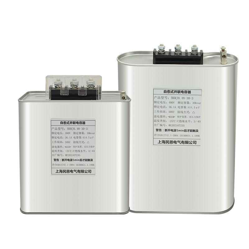 應(yīng)用設(shè)備:電容器內(nèi)部集成了三相分別獨(dú)立的單元,每個(gè)單元采用經(jīng)金屬化處理的聚丙烯薄膜為絕緣材質(zhì)特殊的薄膜鍍層設(shè)計(jì)及邊緣加強(qiáng)設(shè)計(jì),使電容器具有良好的自愈能力和抑制大電流能力。 創(chuàng)新的真空灌注技術(shù),可保證電容器具有良好的熱穩(wěn)定性及散熱性。 電容器在承受過(guò)電壓或臨近使用壽命時(shí),電容器內(nèi)部元件不斷發(fā)生擊穿-自愈循環(huán)直至元件破壞,這一過(guò)程將導(dǎo)致電容器內(nèi)部壓力不斷增加,為了防止不斷增加的壓力導(dǎo)致電容器殼體發(fā)生破裂,電容器內(nèi)部安裝了過(guò)壓力保護(hù)裝置通過(guò)釋放內(nèi)部壓力使端蓋與元件之間的連接斷開(kāi)阻止電流流過(guò),從而防止電容器由干過(guò)載或過(guò)熱引起的爆炸。 電容器內(nèi)置放電電阻,使電容器在離網(wǎng)后能夠自行放電,確保人身安全